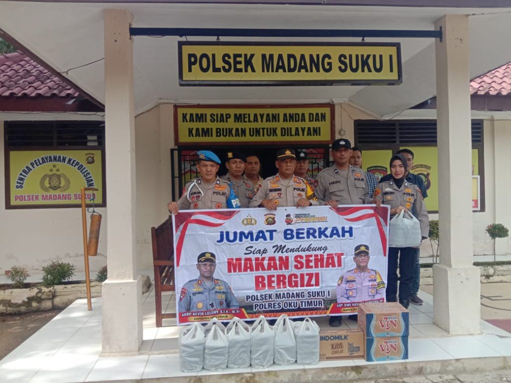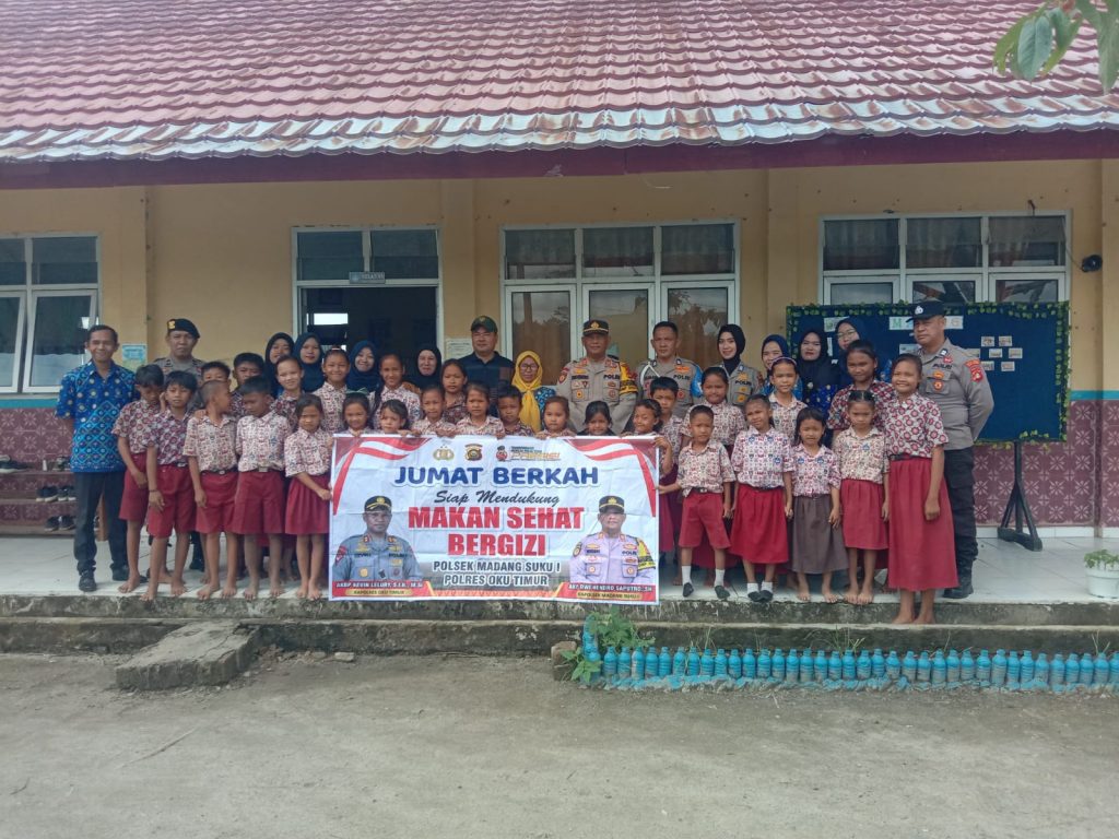 OKU Timur -dalam mendukung program pemerintah Polsek Madang suku 1 melaksanakan kegiatan melaksanakan Program Pemberian Makanan Bergizi Gratis kepada Siswa-Siswi Sekolah SD Negeri 1 Mendayun bertempat di Desa Mendayun Kecamatan Madang Suku 1, Kabupaten OKU Timur.