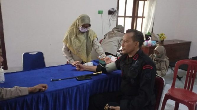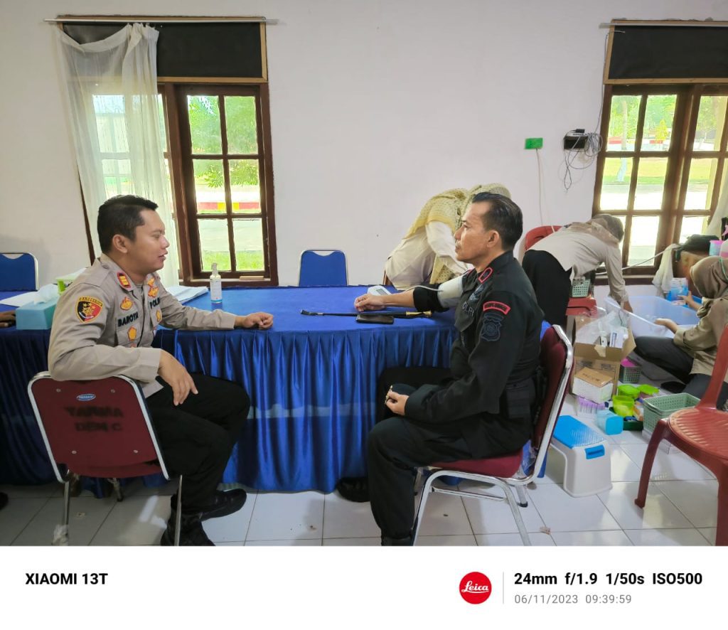 Pelaksanaan Donor darah yang diikuti oleh seluruh personil Brimob,anggota Polsek dan TNI dengan tatacara memenuhi syarat yaitu di periksa dahulu tensi dan kesehatan para peserta donor agar sterilnya jalannya kegiatan.