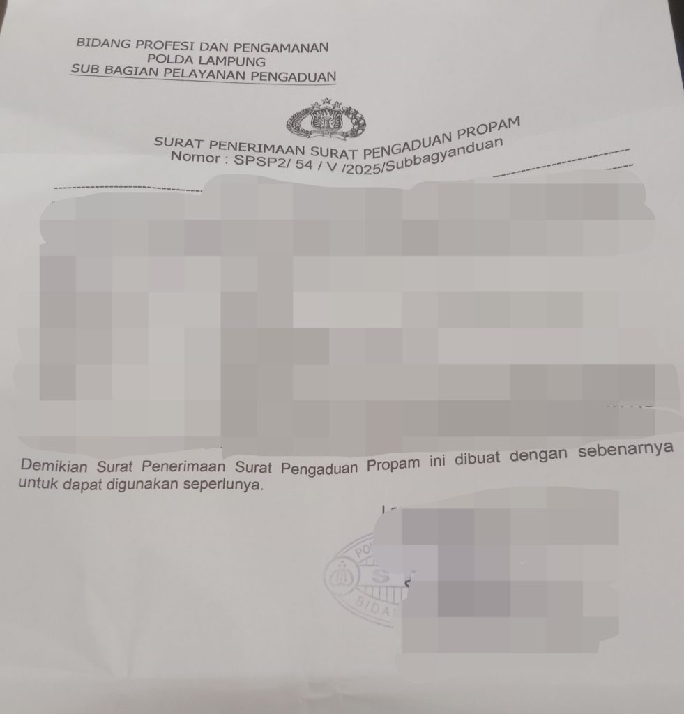“Padahal semua bentuk saya sudah koperatif apapun bentuknya KALAU SEMISAL KURANG UANG KORDINASINYA NGOMONG!!!, dan saya sebagai owner lestari sangat kecewa atas kejadian ini dan melaporkan ke Bid-Propam Polda Lampung dan di terima dengan bukti di berikan surat penerimaan surat PENGADUAN PROPAM dengan nomor : SPSP2 / 54 / V / 2025 / Subbagyanduan, pada 16 mei 2025,”tutup.owner karoke lestari.
