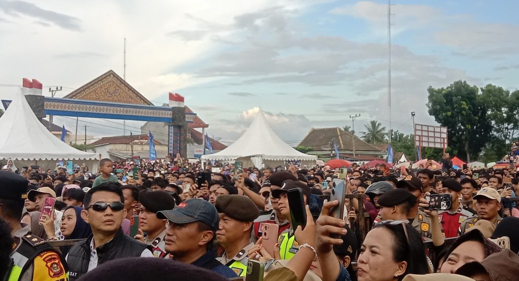 OKU Timur – Meski sempat diguyur hujan, tak menyurutkan minat masyarakat OKU Timur untuk dapat menyaksikan hiburan yang disuguhkan pemerintah daerah setempat dalam rangka memeriahkan HUT ke-20 OKU Timur. Puluhan ribu masyarakat belitang bersorak serentak menyambut kehadiran Kangen Band yang merupakan grup band nasional di Lapangan KONI Belitang sebagai puncak rangkaian acara. Sabtu (20/01/2024)