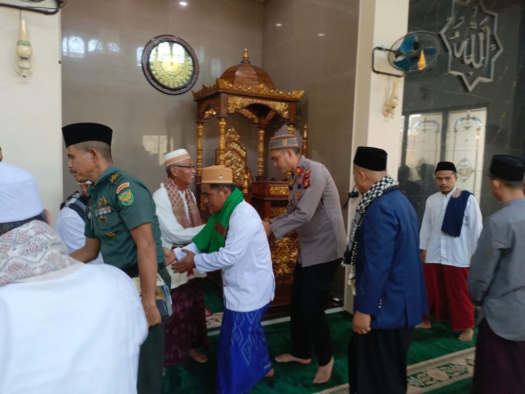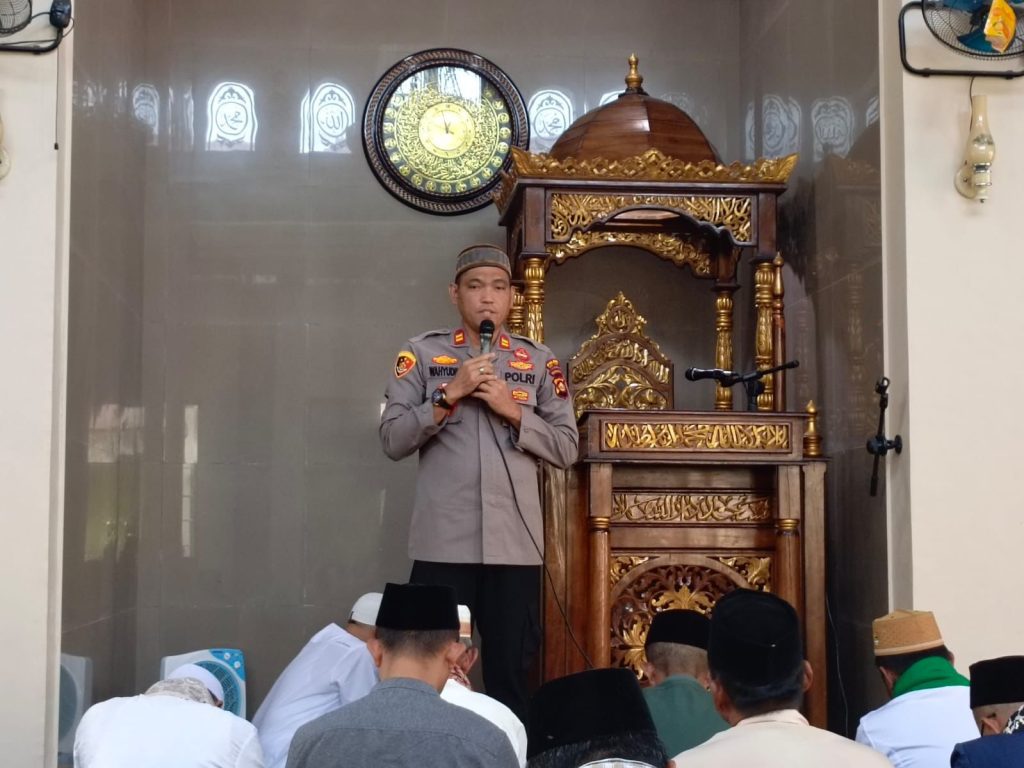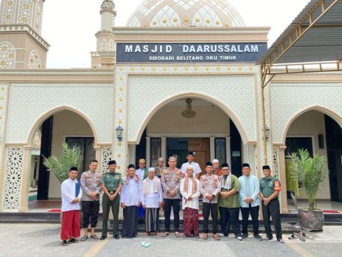 OKU Timur –Dalam suasana bulan suci ramadhan 1446 Hijriah / 2025 Masehi Kapolsek Belitang 1 Iptu Wahyudin SH,M.Si, bersama pengurus MUI dan Forkompincam kecamatan Belitang langsungkan kegiatan safari Jumat di masjid Darussalam Sidodadi BK 9.