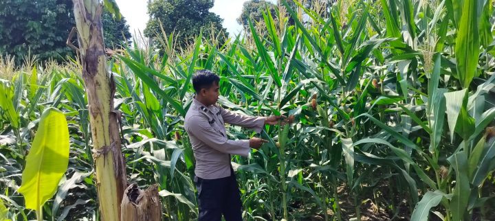 Kanit Bimas Polsek BP Peliung Melangsungkan Kegiatan Kontrol Perkembangan Tanaman Jagung Desa Banu Ayu