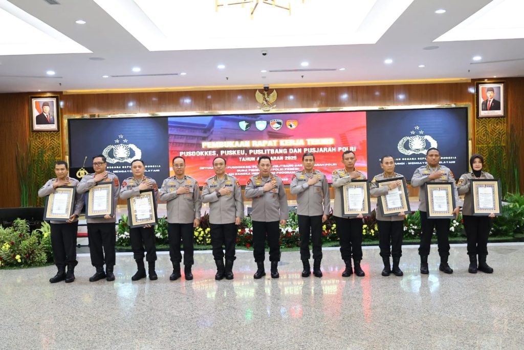 J a k a r t a –Pembukaan Rakernis gabungan Pusdokkes, Puskeu, Puslitbang dan Pusjarah oleh bapak Kapolri, Jenderal Listyo Sigit Prabowo, dilajutkan dengan pemberian penghargaan terhadap satker yang mencapai nilai IKPA 100% di Rupatama Mabes Polri pada Kamis (22/5).