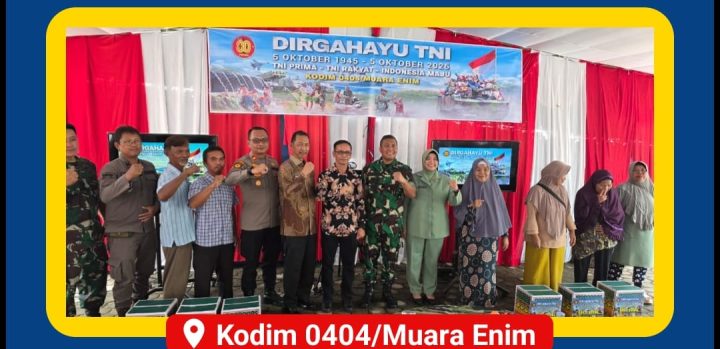 Muara Enim, Kodam II/Sriwijaya - Suasana haru dan bahagia terpancar dari wajah warga Muara Enim saat Komando Distrik Militer (Kodim) 0404/Muara Enim menggelar bakti sosial spektakuler dalam rangka memperingati Hari Ulang Tahun (HUT) ke-80 Tentara Nasional Indonesia (TNI).