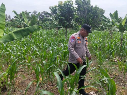 OKU Timur, Sumsel –Bhabinkamtibmas Polsek BP Peliung cek dan Kontrol perkembangan pertumbuhan Jagung di lahan ketahanan pangan Polsek BP Peliung di Desa Pulau Negara, kecamatan BP Peliung.