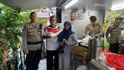 Jakarta –Direktorat Samapta Polda Metro Jaya membangun dapur umum di Jatirasa, Jatiasih, Kota Bekasi, Jawa Barat (Jabar), yang merupakan kawasan terdampak banjir hebat kemarin. Dapur umum untuk membantu warga terdampak yang kesulitan.