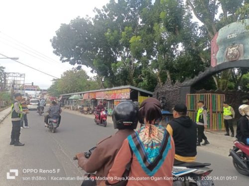 OKU Timur –polsek Madang Suku 1 di hari libur idul Fitri 1446 H / 2025 M melaksanakan pengamanan objek wisata di taman Singapure Desa Tugu Harum kecamatan Belitang Madang Raya berlangsung aman kondusif.