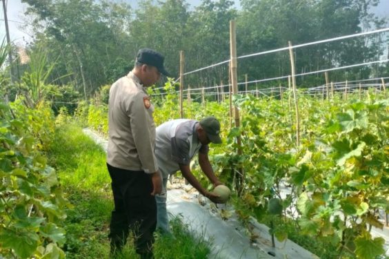 Di ketahui Aipda Heri Sumanto melakukan pengecekan lahan melon seluas satu hektar milik salah satu warga masyarakat yang bernama Tukirin (51) asal Desa Jati Mulyo, selain melaksanakan kegiatan rutin dia juga melakukan edukasi kepada warga cara mengaplikasikan bertanam melon yang baik dengan tujuan agar mendapatkan hasil buah / panen yang sukses,(26/3).