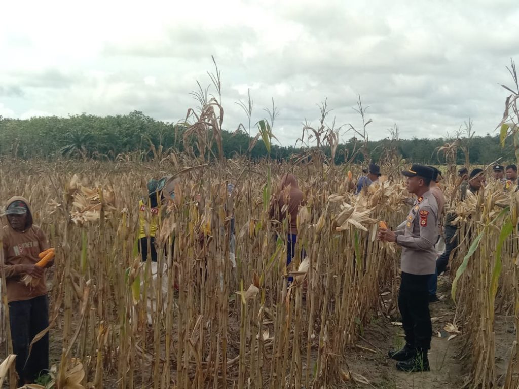 OKU Timur –Polsek Madang Suku 1 panen raya jagung serentak tahap satu di Lahan Jagung milik Kusworo warga Desa Jati Mulyo kecamatan Belitang Madang Raya, kegiatan ini sebagai bentuk implementasi dari Instruksi Presiden RI untuk memperkuat ketahanan pangan pada pembangunan pertanian untuk menuju Indonesia Emas tahun 2045.