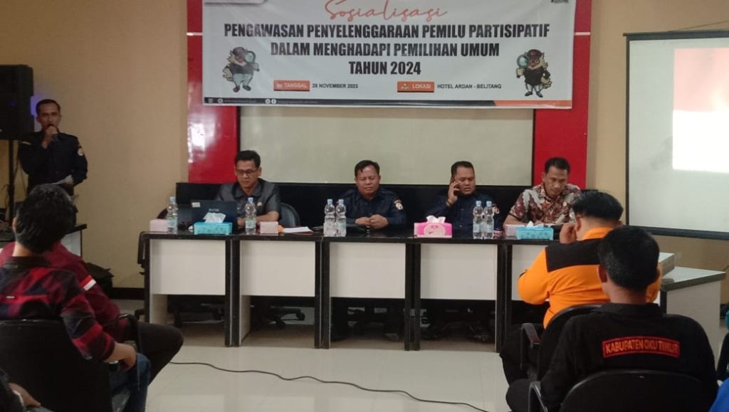 Sosialisasi pengawasan penyelenggaraan pemilu partisipatif dalam menghadapi pemilu tahun 2024 tersebut yang mana pelaksana yang bertujuan pihak penyelenggara dari masing-masing panwascam se-kabupaten OKU Timur dapat memahami petunjuk teknis pengawasan dalam tahapan pemilu tahun 2024,serta dapat bekerja secara Profesionalisme dan kinerja yang baik dari segi pengawasan maupun penanganan pelanggaran oleh penyelenggara pemilu serentak Tahun 2024.