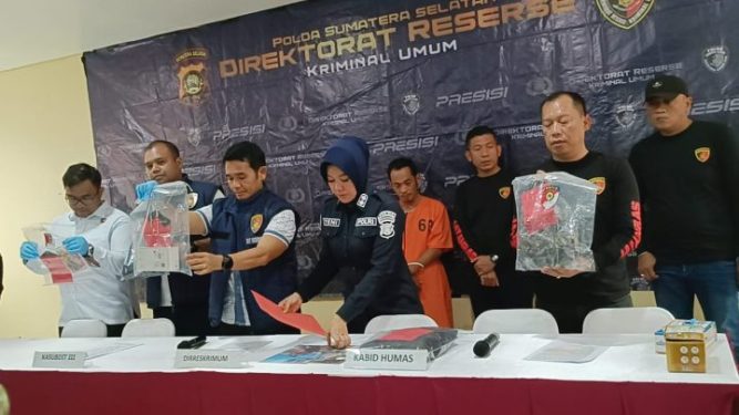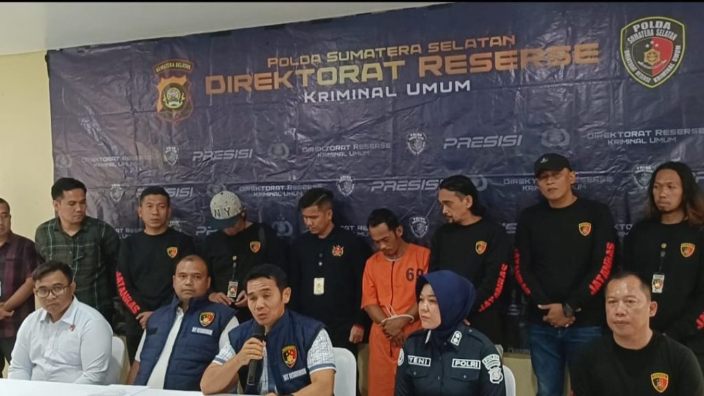 Wadireskrimum Polda Sumsel Kombes Pol Tulus Sinaga mengungkap kasus di Gedung Mapolda Sumsel saat Press Rillis pada Senin (1/1/2024) bersama beberapa awak media.