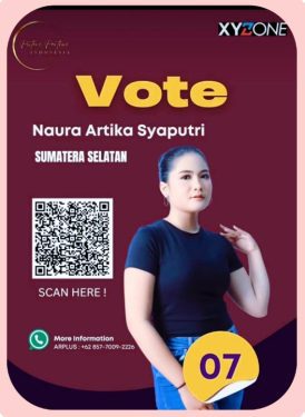 Dari berbagai prestasi nya akhirnya Pada tahun 2025 ini, NAURA akan mengikuti kegiatan pemilihan PUTERI PERTIWI INDONESIA yang akan di laksanakan selama 3 (tiga) hari di Hotel the Acica jakarta pusat dari tanggal 7 – 9 Februari 2025.